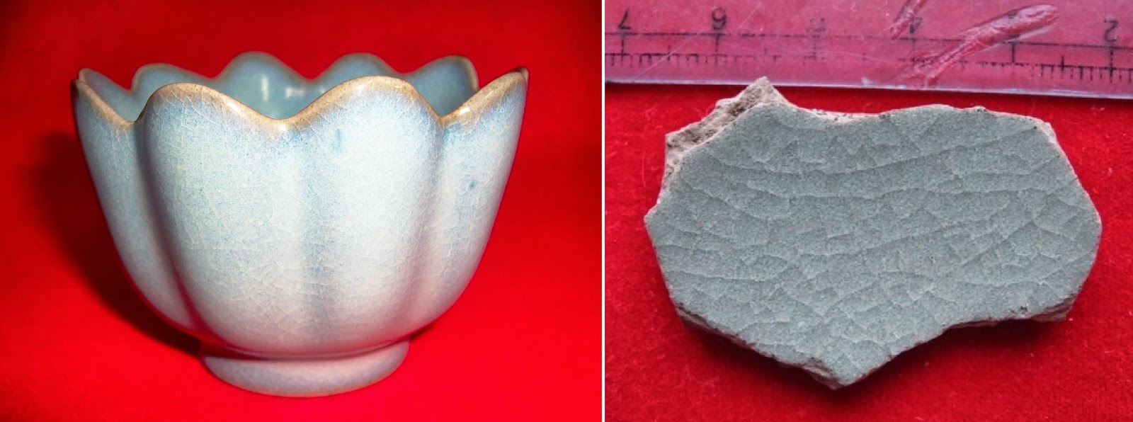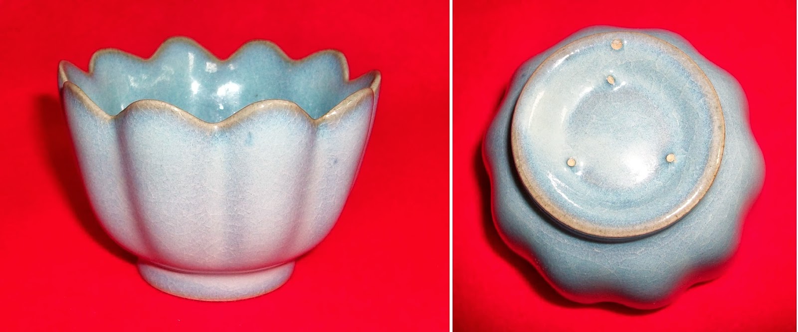 3. 釉面青白證明絕非是現代瓷器: 宣德青花瓷的釉面青白,釉面青白為整個明代傳統燒造方法所致,因釉料中摻有草木灰,並用木柴燒,所以會產生這種效果。現代瓷器的釉面成分及燒造工藝都與明代不同,因此釉面無此青白色。