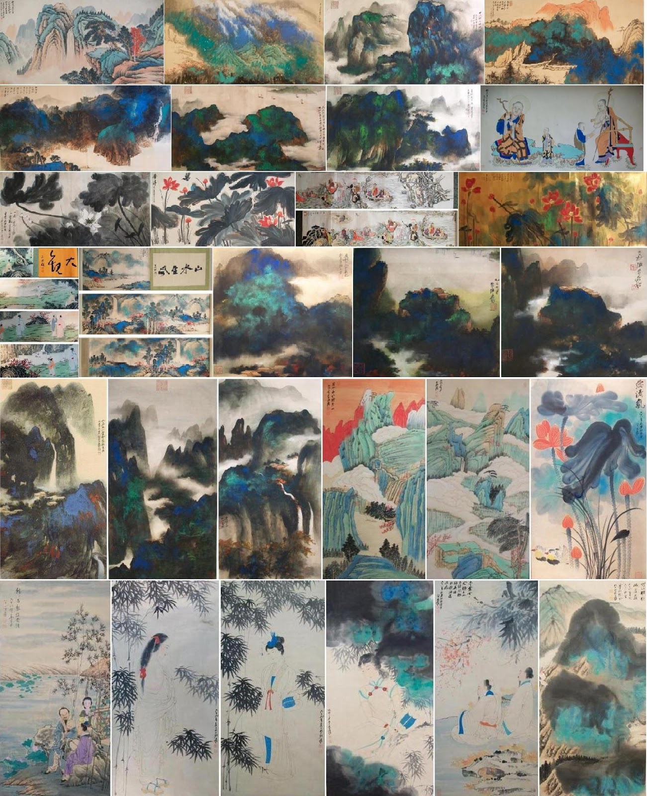 (15) Refined Splashed and Refined Brushed painting technique created at the late splashed painting period of Zhang Daqian.